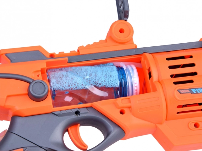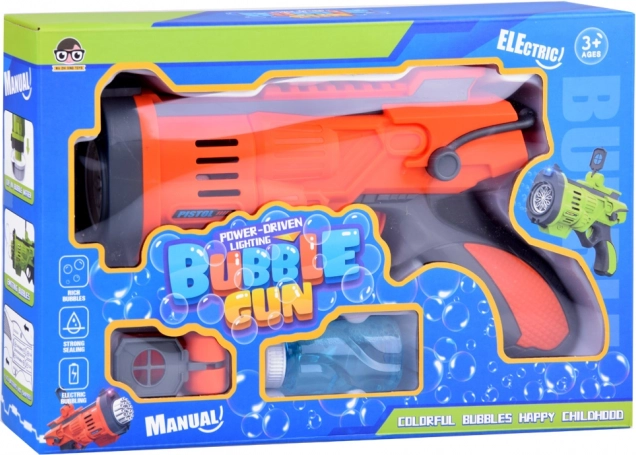 Nella confezione trovi soluzione per bolle, batteria ricaricabile 3,7 V 500 mAh, cavo USB e mirino applicabile. Basta riempire il serbatoio, premere il grilletto e guardare l’aria riempirsi di bolle scintillanti. La ricarica via USB è comoda ed ecologica: niente batterie monouso.