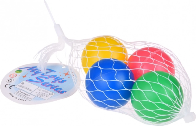 - Set da 4 pezzi: palline rossa, gialla, blu e verde in una pratica rete.