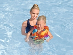 Il colore arancione intenso e la grafica ben visibile facilitano il controllo del bambino durante il gioco e le lezioni di nuoto.