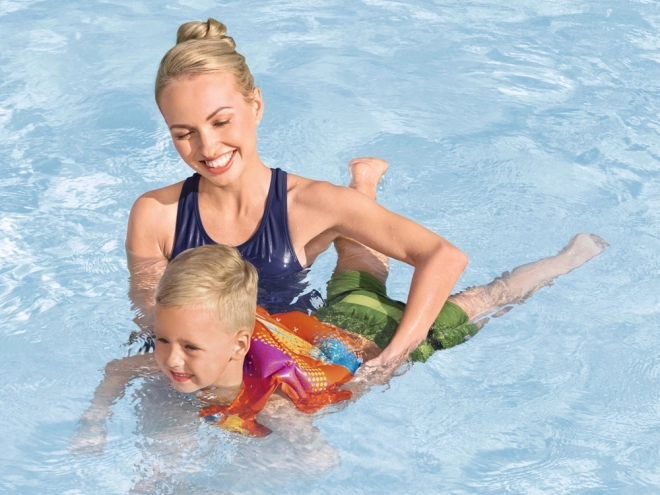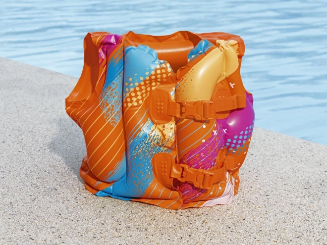 Il colorato gilet gonfiabile BESTWAY aiuta nell’apprendimento del nuoto per bambini 3–6 anni (19–30 kg). Offre due camere d’aria indipendenti, fibbies regolabili e il resistente materiale TOUGHLITE per maggiore sicurezza. Il vivace colore arancione garantisce un’ottima visibilità in acqua.