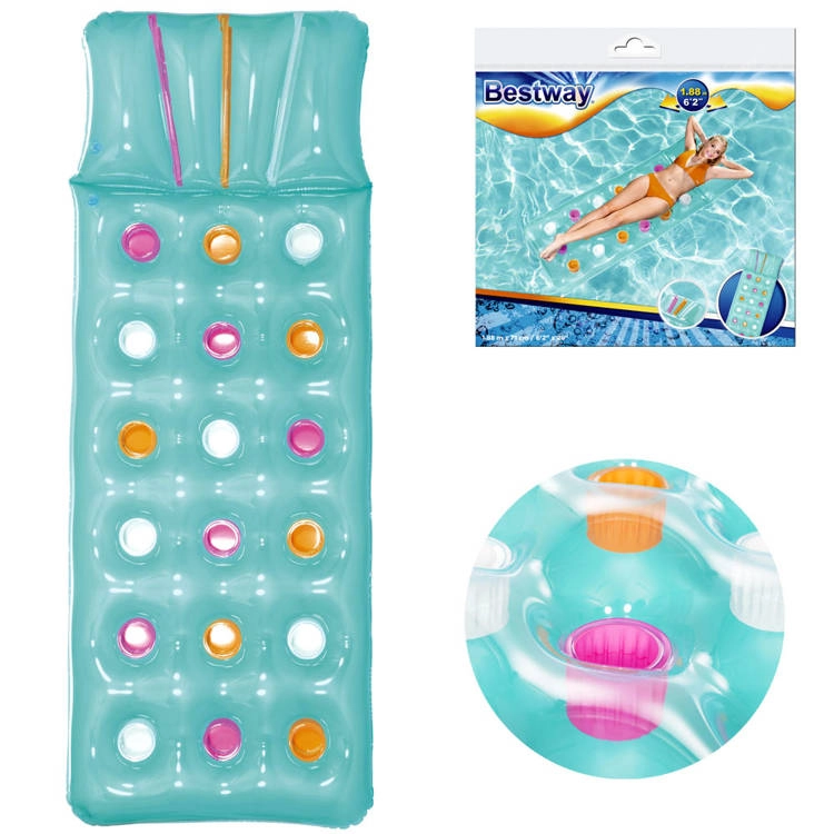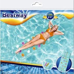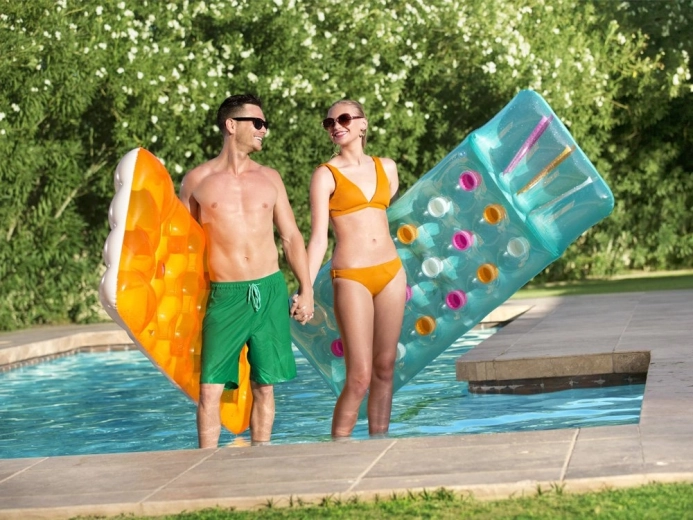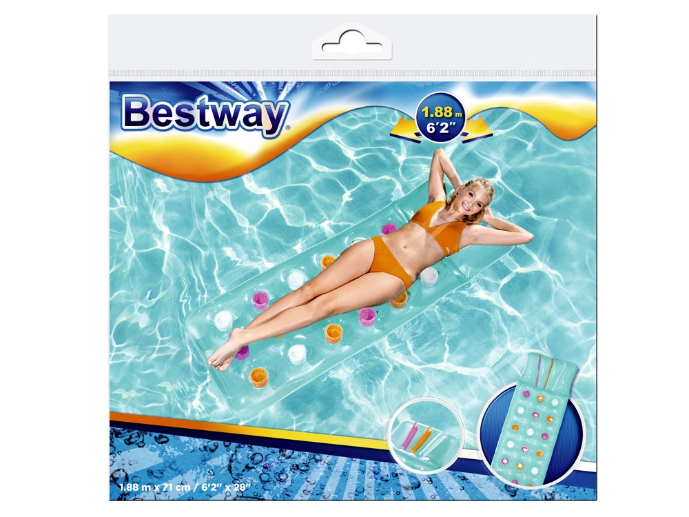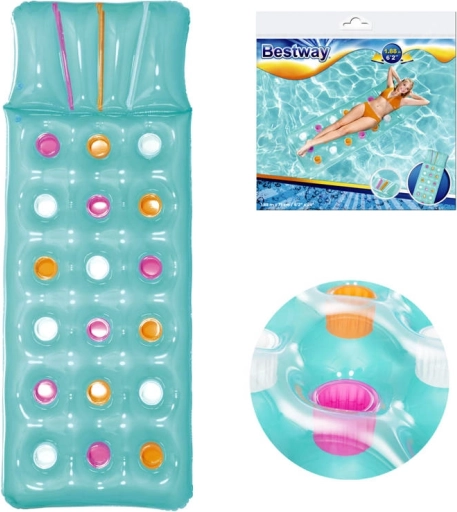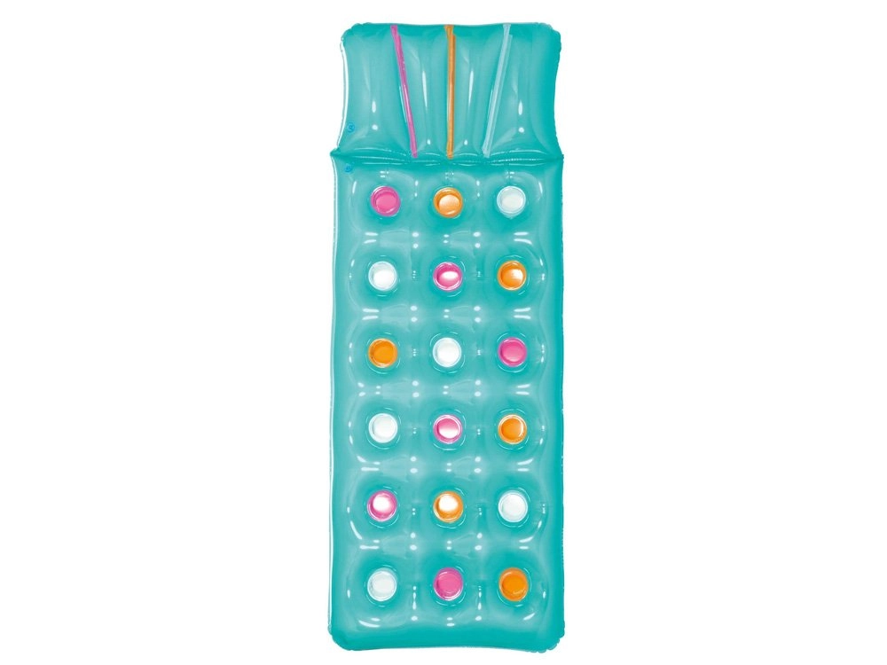 Goditi l’estate al massimo con il materassino gonfiabile BESTWAY con cuscino integrato. Offre comodo riposo, struttura stabile in PVC resistente e portata fino a 90 kg. Il design colorato illumina ogni piscina e spiaggia e, grazie alle dimensioni compatte, lo porti facilmente ovunque.