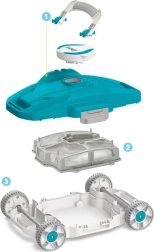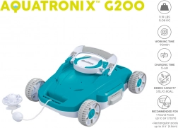 Il dispositivo è gestito tramite un unico interruttore di accensione e dispone di sensori integrati che attivano AquaTronix per iniziare la pulizia quando viene immerso in acqua e spengono l’alimentazione quando viene estratto, proteggendo il motore e prolungandone la durata. L’ampia camera integrata può contenere fino a 3,5 l di detriti. Una volta completamente carico, AquaTronix funziona per circa 90 minuti, offrendo tempo sufficiente per ottenere una piscina cristallina. Questo robot senza fili ha piena libertà di movimento grazie al flusso direzionale brevettato, che gli consente di cambiare direzione quando incontra pareti o ostacoli. Inoltre, le clip a sgancio rapido semplificano la manutenzione e la pulizia: basta aprire la camera e rimuovere lo sporco.