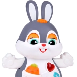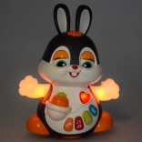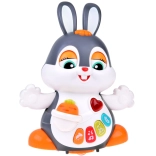 Caratteristiche:- Musica e luci: Il coniglietto balla al ritmo di canzoni allegre e lampeggia con luci colorate, stimolando i sensi del bambino e aggiungendo divertimento.