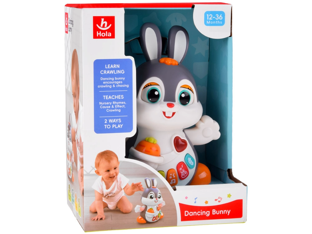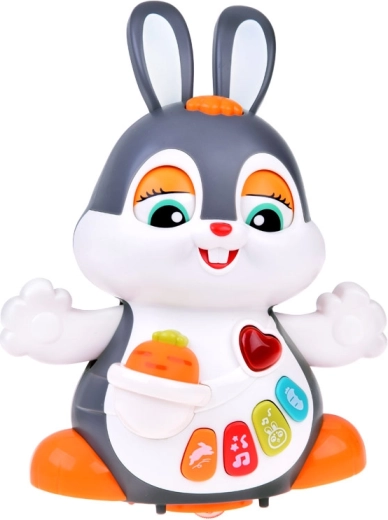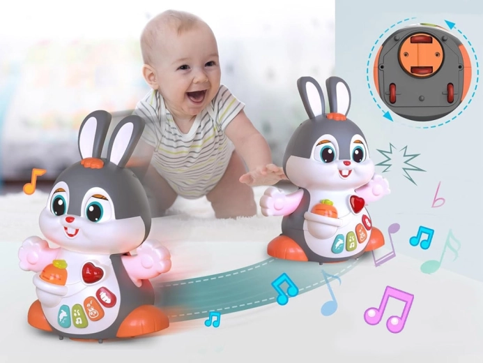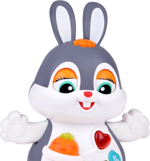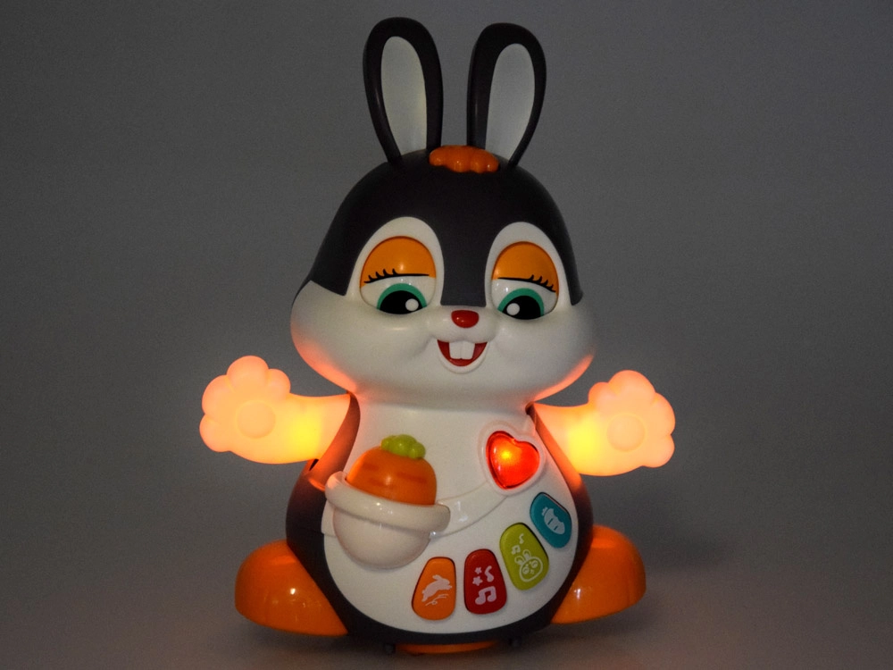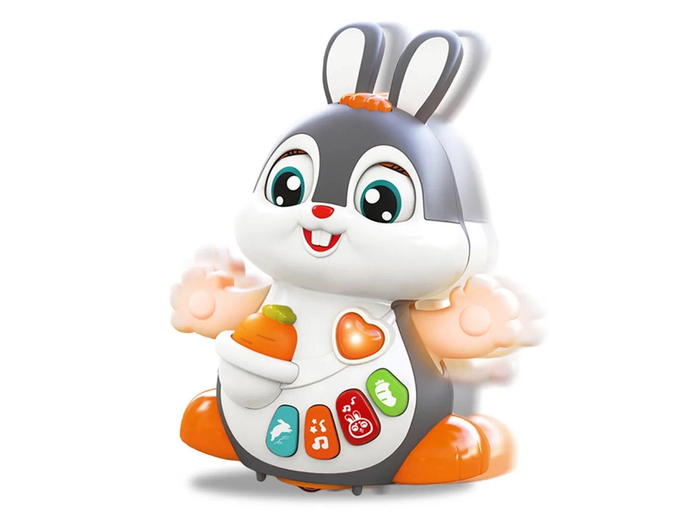 Il coniglietto interattivo danzante è un ottimo compagno per i primi passi e per il gattonamento. Il giocattolo si muove, ammicca e si illumina a ritmo di musica. I bambini saranno attratti dai pulsanti colorati con funzioni diverse: melodie, battito del cuore, suoni dei saltelli o dello sgranocchiare la carota – tutto accompagnato da effetti luminosi.