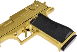 Indossa il tuo personaggio di gioco e immergiti nel mondo dell'azione con il nostro Desert Eagle dorato. Realizzato in plastica di alta qualità, questo modello attraente offre un esperienza realistica grazie al clic autentico e al caricatore rimovibile proprio come nei film. Le funzioni speciali includono: