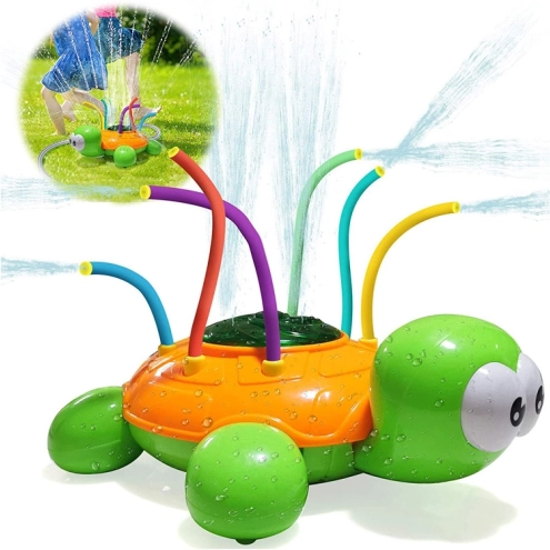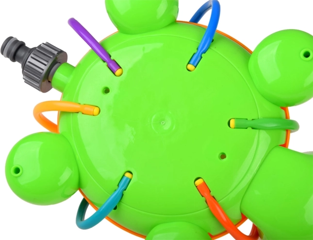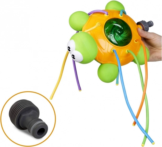 Tartaruga verde e arancione con tubicini spruzzatori colorati e flessibili che garantiscono tanto divertimento nelle giornate calde. La fontana che si crea collegando un normale tubo da giardino alla tartaruga offre risate, movimento e un divertimento straordinario. Lo spruzzatore è facile da installare e può essere collegato a qualsiasi comune tubo da giardino e rubinetto; regolando la pressione dell’acqua al rubinetto otterrai uno spruzzo più forte o più delicato.