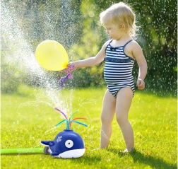I tubicini flessibili sul dorso della balena spruzzano acqua in tutte le direzioni creando un allegro effetto acquatico variabile che i bambini adorano.