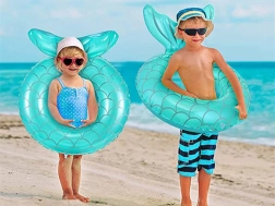 Adorabile anello da nuoto per bambini con motivo sirena, offre divertimento sicuro in acqua e favorisce l’apprendimento del nuoto. Grazie alla pinna evidente e alla stabilità antiscivolo sull’acqua, i bambini si divertiranno per ore in piscina, al mare o al lago. La solida plastica con stampa a squame in azzurro turchese colpisce a prima vista.