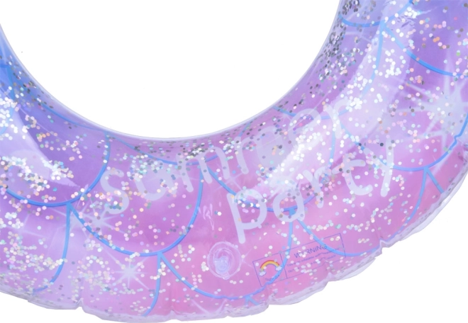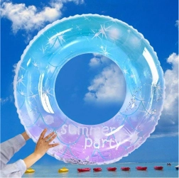 Elegante salvagente gonfiabile per bambini con design trasparente e coriandoli scintillanti all'interno, il must dell'estate per piscina e spiaggia. Leggero, compatto e adatto ai bambini dai 3 anni. Il diametro di 80 cm garantisce un galleggiamento confortevole e tanto divertimento in acqua.