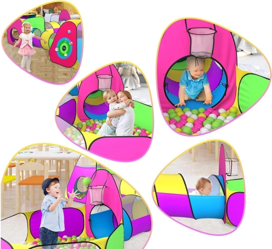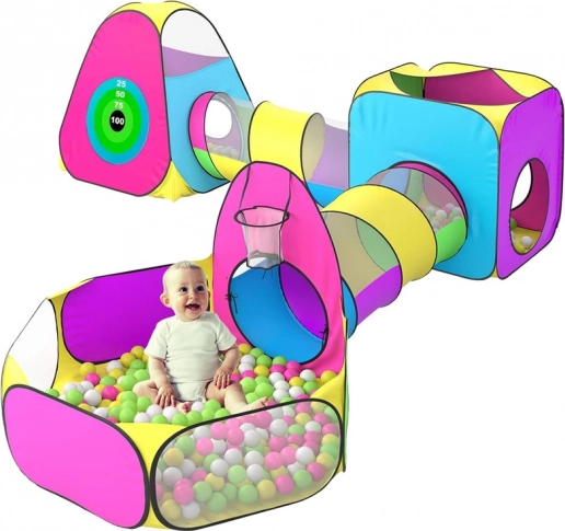 Piscina/tenda con palline con contenitore per un gran numero di palline e un canestro per lanci (le palline non sono incluse).