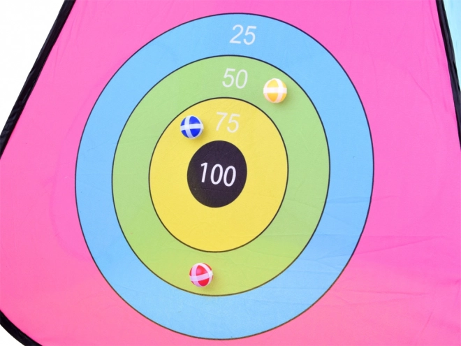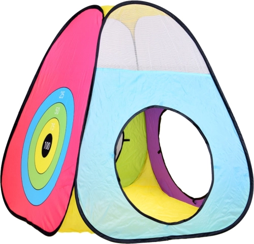 Tenda triangolare: è dotata di un bersaglio per tirare le palline con velcro e di aperture speciali che corrispondono ai colori delle palline.
