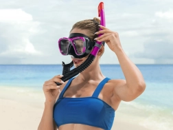 Set Bestway Hydro Pro Galapagos™ è destinato agli amanti delle escursioni subacquee. La maschera è adatta per bambini dai 14 anni e adulti. Universale con maschera a cinturino regolabile che si adatta facilmente alla testa dell'utente. Boccaglio in silicone con tubo ha una valvola di sfiato integrata per rimuovere facilmente l'acqua e garantire una respirazione confortevole durante il nuoto. La maschera con lenti in vetro temperato offre una visione chiara sott'acqua.