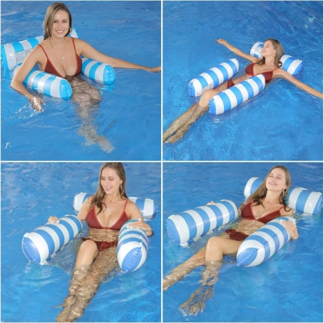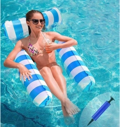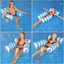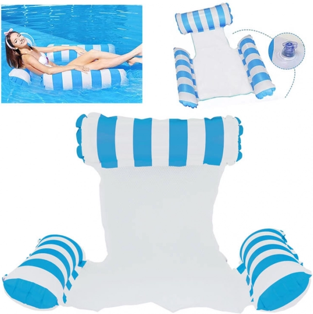 Dite addio ai comuni materassini galleggianti e scoprite un'opzione unica - il lettino stile amaca, ideale per le giornate calde d'estate. Progettato per consentire un parziale immersione nell'acqua, così sarai sempre al fresco mentre prendi il sole. Il materassino è dotato di parti gonfiabili realizzate in PVC resistente e collegate da una rete in nylon per il massimo comfort. Il suo design elegante in blu e bianco sarà un ornamento per le foto delle tue vacanze.
