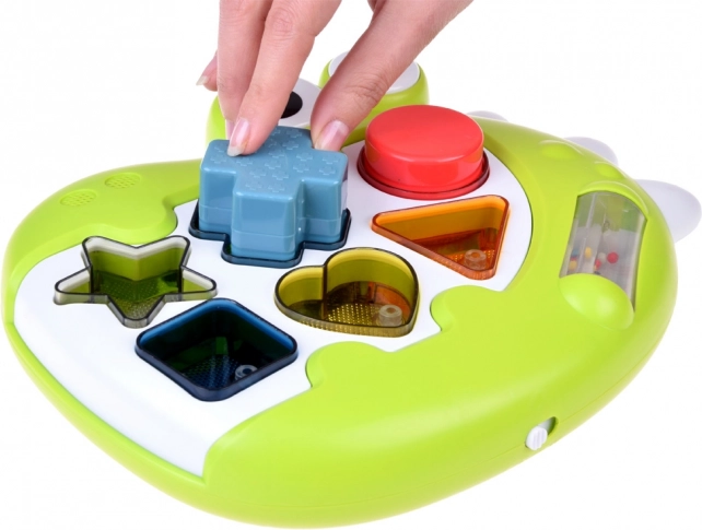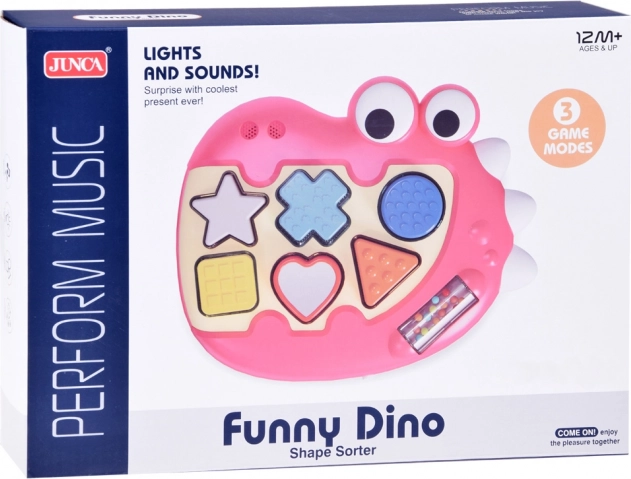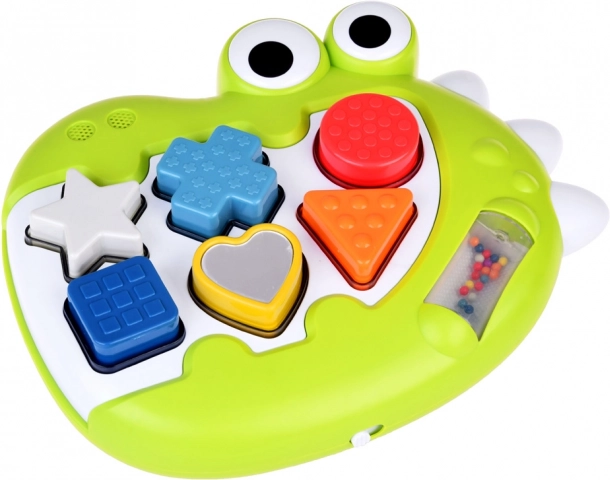 Questo simpatico dinosauro ha diverse forme di apertura: triangolo, quadrato, cerchio, cuore, stella e croce, che il bambino deve collocare correttamente. Ogni pezzo ha un colore e una consistenza diversi, rendendo il gioco sensorialmente interessante. Alcuni pezzi contengono all'interno delle perline che emettono suoni quando vengono scossi.
