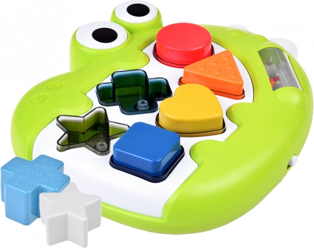 Questo giocattolo insegna ai bambini a distinguere diverse forme e colori, sviluppando le loro capacità visive e motorie.