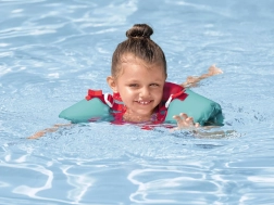 Il giubbotto è realizzato con materiali piacevoli per la pelle dei bambini e assicura comfort durante il nuoto.