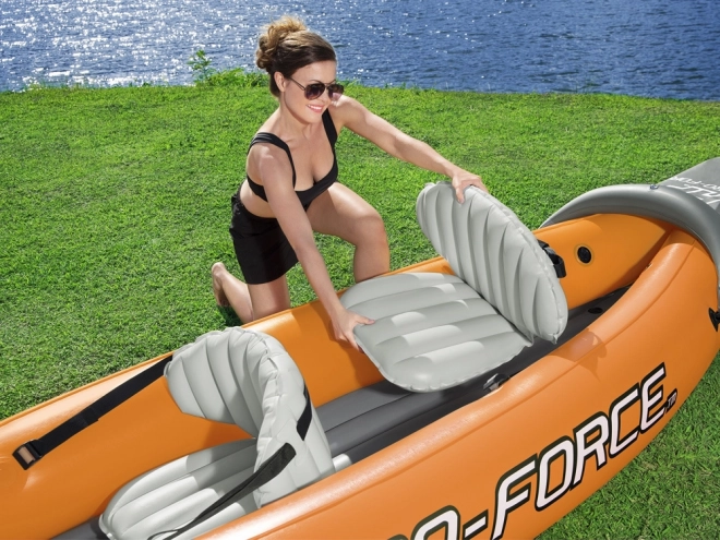 Il kayak offre abbastanza spazio per due persone ed è dotato di comodi sedili gonfiabili con schienali per un'ottima esperienza di navigazione.
