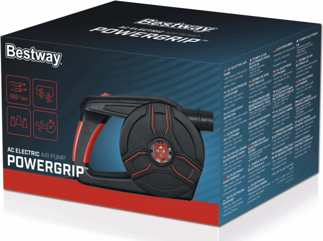Questa pompa elettrica del marchio Bestway combina potenza elevata e compatibilità universale. È dotata di tre valvole universali che la rendono ideale per diversi oggetti gonfiabili, come materassi, giocattoli da piscina e altro. Con un flusso d'aria di 1100 l/min garantisce un gonfiaggio veloce e può essere facilmente commutata in modalità sgonfiaggio per una conservazione comoda. La pompa è alimentata da una presa domestica a 220 V e raggiunge una pressione di 0,97 PSI, rendendola adatta anche per oggetti più grandi che richiedono alta pressione.