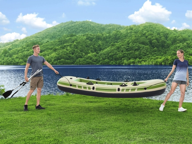 Il gommone è dotato di cuscini gonfiabili sui sedili e di un pavimento gonfiabile, che contribuiscono al comfort durante la navigazione. Una volta terminata l'avventura, si può arrotolare facilmente e riporre nella borsa resistente. Il suo carico massimo è 360 kg, garantendo sicurezza a tutti i passeggeri.