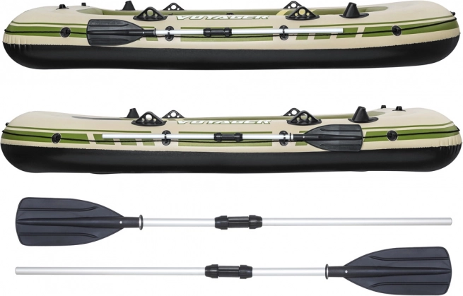 Include remi solidi, supporti per remi, portacanne da pesca e cuscini gonfiabili sui sedili, per un comfort e una funzionalità completi sull'acqua.