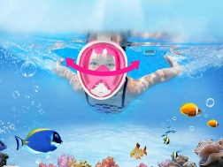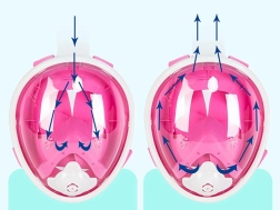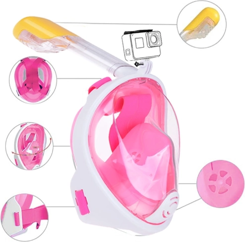 Scopri le meraviglie del mondo sottomarino senza sforzo con la maschera da snorkeling a viso intero. Questa maschera innovativa offre un ampio campo visivo di 180° e una respirazione facile grazie ai canali separati per l'inspirazione e l'espirazione.