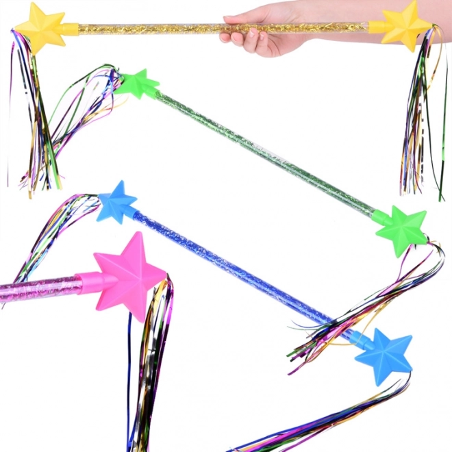 La bacchetta è realizzata in plastica leggera, che combina nastri colorati eleganti e perline all'interno per un effetto aggiuntivo.