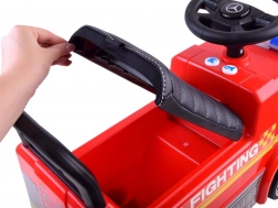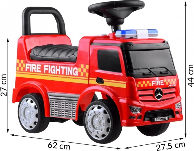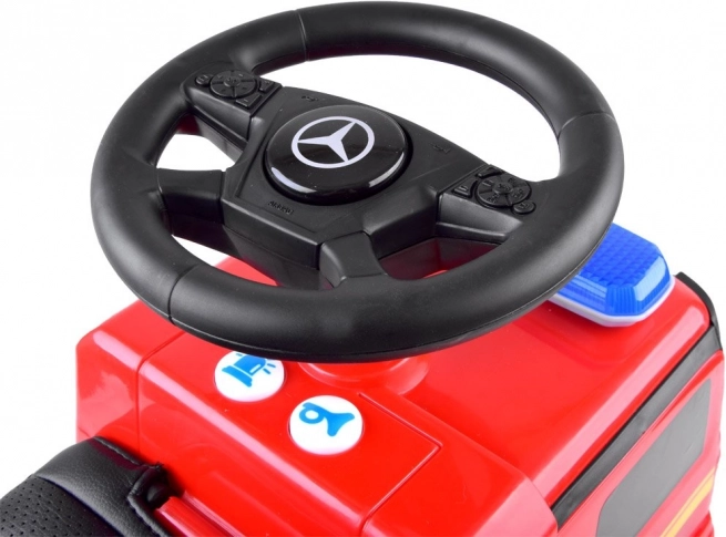 Fornisci al tuo bambino divertimento e sicurezza con questo passeggino Mercedes con licenza a forma di autopompa. Realizzato in plastica di alta qualità, garantisce durabilità e vivacità dei colori. Grazie al comodo sedile con schienale, la guida è non solo confortevole ma anche sicura. Il meccanismo di bloccaggio impedisce il ribaltamento all'indietro.