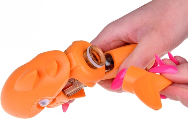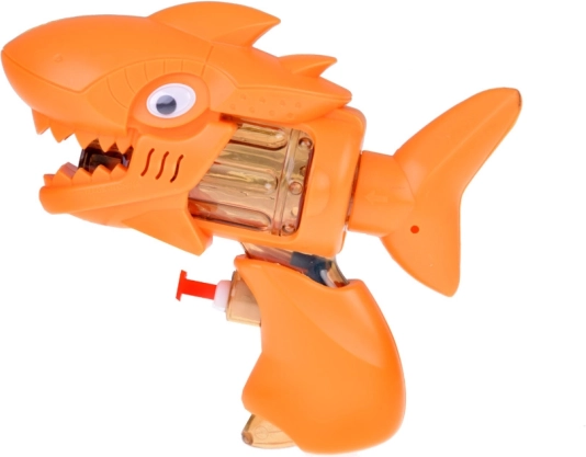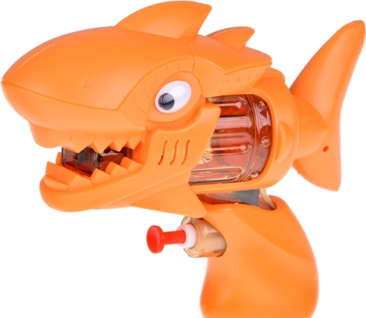 Questa compatta pistola ad acqua a forma di squalo arancione è realizzata in plastica liscia e piacevole al tatto, ideale per il divertimento estivo. I bambini apprezzeranno l’aspetto giocoso con pinne, denti e un occhio evidente che oscilla allegramente durante il movimento. Grazie al serbatoio trasparente, i piccoli tiratori hanno sempre sotto controllo l’acqua rimanente.