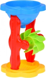Versate sabbia o acqua nell’imbuto e osservate la ruota che gira. Uno spettacolo coinvolgente che stimola la curiosità.