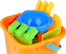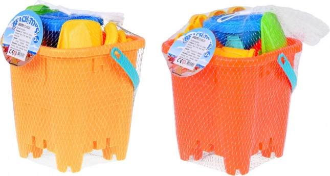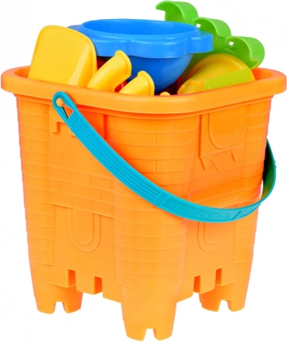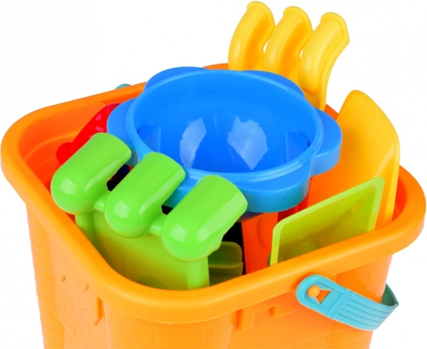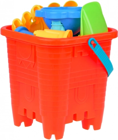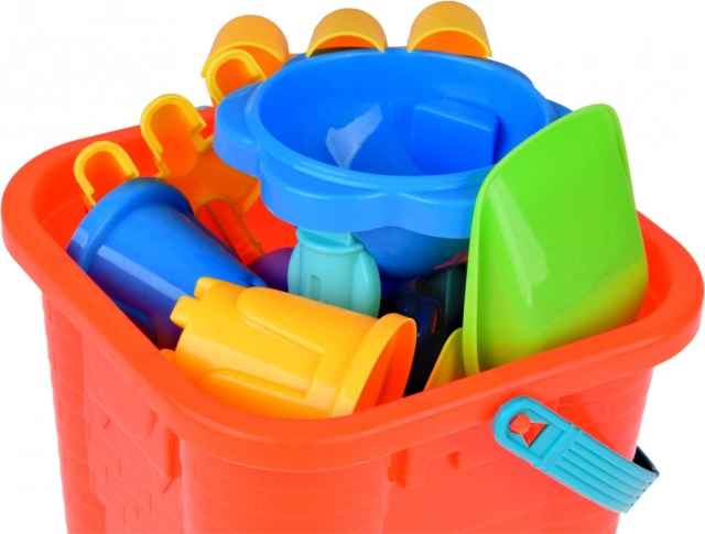 Un colorato set da sabbia per piccoli costruttori porta tutto il necessario per creare castelli, torri e forme marine. Include un secchio a forma di castello, due palette, due rastrelli, cinque formine e una ruota a mulino per acqua/sabbia. Grazie alla comoda maniglia in silicone, il secchio è facile da trasportare per i bambini e dopo il gioco si può riporre tutto con facilità. Ideale per spiaggia, parco giochi e anche per la vasca da bagno – per un gioco creativo, lo sviluppo della motricità fine e la fantasia.