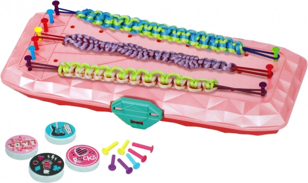 Scopri il mondo creativo dei gioielli con questo set compatto in astuccio rosa. All'interno trovi tutto per realizzare braccialetti originali: dai cordoncini colorati e gli elastici a perline e adesivi. Grazie alla pratica scatola, il set è ideale in viaggio e favorisce la motricità fine, la creatività e l'espressione di sé dei bambini. La certificazione CE e la conformità alla EN71 garantiscono un divertimento sicuro.