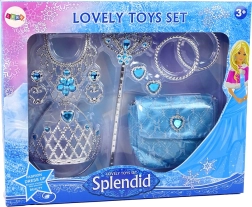 Questo set è stato progettato appositamente per le bambine, mantenendo un colore blu pastello, arricchito con elementi scintillanti e pietre brillanti. Perfetta scelta per balli in maschera, feste di compleanno, feste a tema o per l'uso casalingo quotidiano.