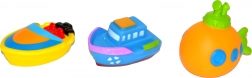 Scopri il divertimento in vasca con un set di tre morbidi giochi in gomma: due barchette e un sottomarino. Ideale per i più piccoli da 0+, sicuro per le manine e facile da afferrare. Materiale morbido, gioco sicuro in acqua e facile manutenzione garantiscono allegria a ogni bagnetto.