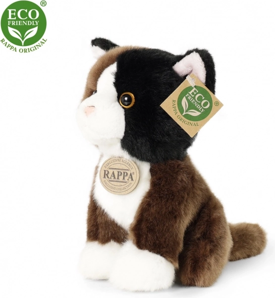 Adorabile gatto di peluche tricolore alto 18 cm che farà felici bambini e collezionisti. Realizzato in peluche di alta qualità con lavorazione artigianale e imbottitura eco-friendly in PET riciclato. Morbidissimo, sicuro dalla nascita e perfetto come regalo.