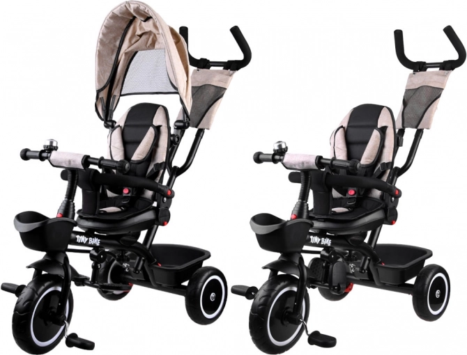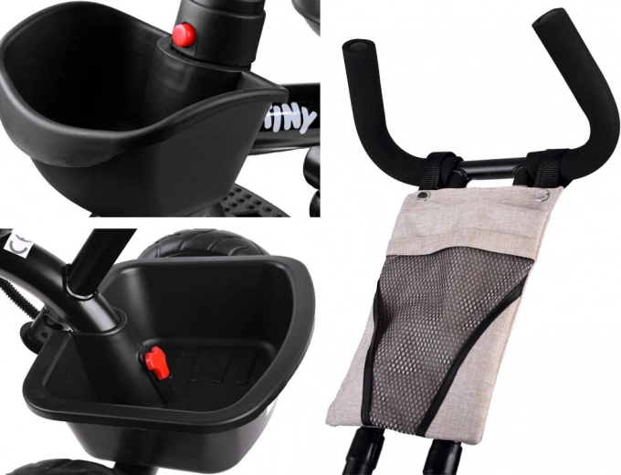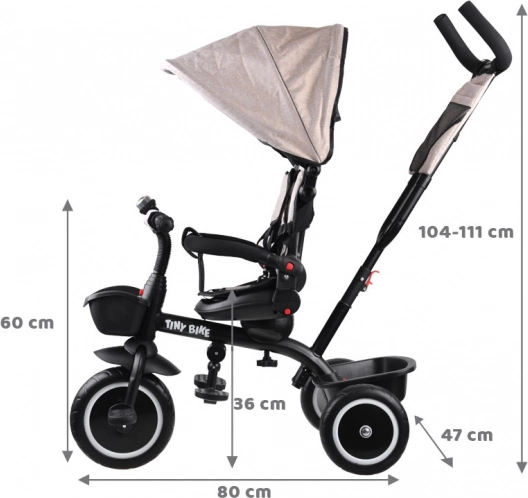 Il pratico triciclo 3 in 1 TINY BIKE cresce con il tuo bambino dai 6 mesi fino a circa 5 anni. Offre sedile girevole e reclinabile, cappottina parasole con rete, cinture di sicurezza a 5 punti, guida parentale ad altezza regolabile e ruote senza manutenzione in schiuma EVA. Grazie alla solida struttura in acciaio e alla ricca dotazione è ideale per le passeggiate quotidiane.