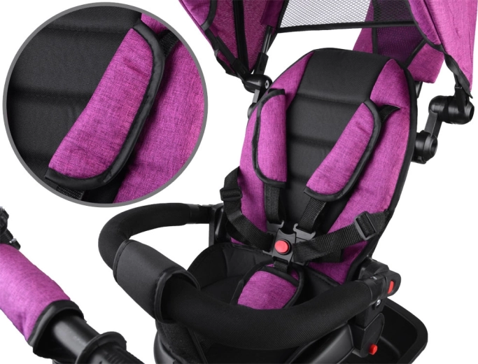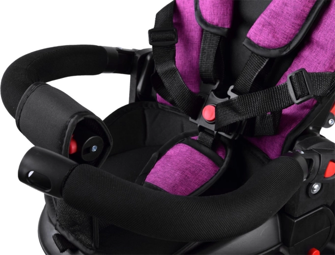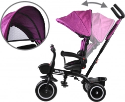 Questo triciclo multifunzionale combina i vantaggi di passeggino, bici senza pedali e triciclo classico. Grazie al sedile girevole puoi trasportare il bambino rivolto verso il genitore o nel senso di marcia. Imbottitura morbida, cinture a cinque punti e barriera di sicurezza removibile assicurano massimo comfort e protezione.