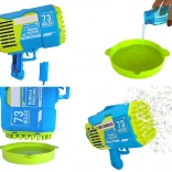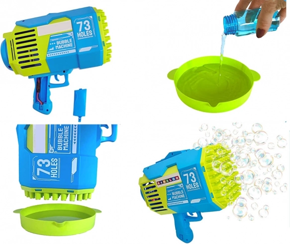 Questa potente pistola per bolle trasforma ogni momento in uno spettacolo magico. Basta versare la soluzione nella vaschetta, immergere la testina e premere il pulsante: decine di ugelli generano contemporaneamente un flusso costante di bolle. Ideale per compleanni, matrimoni, grigliate e giochi in giardino.