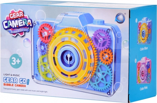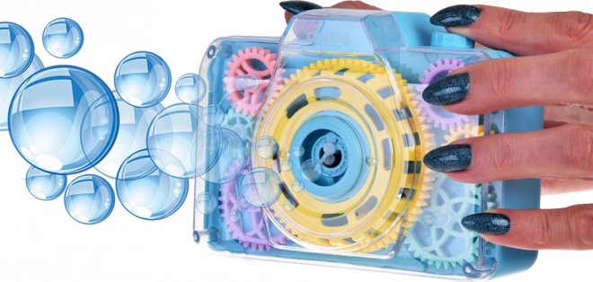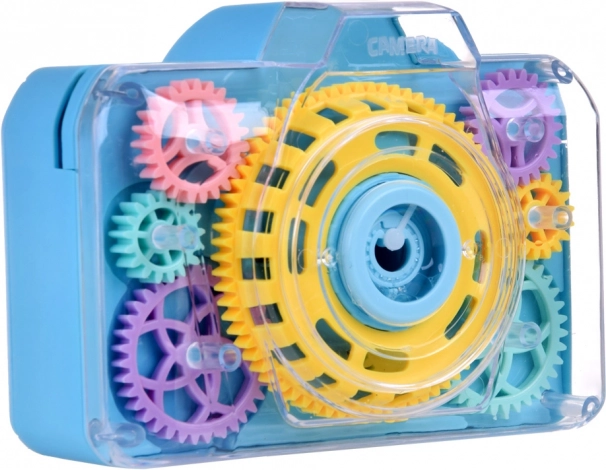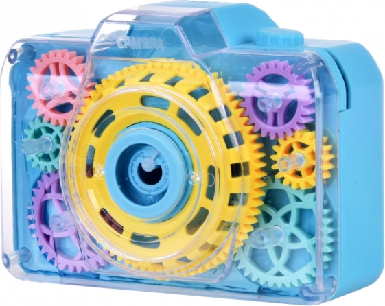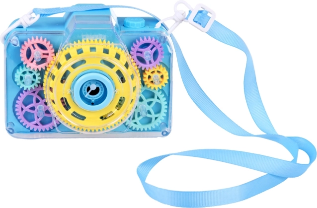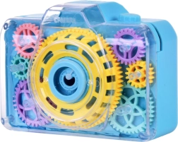 Questa divertente fotocamera a bolle trasforma ogni pressione del pulsante in una piccola magia: si sente il suono della fotocamera, si accendono le luci lampeggianti e nell’aria vola una pioggia di bolle. Grazie alla copertura trasparente i bambini vedono come gli ingranaggi colorati ruotano durante il gioco, stimolando curiosità e percezione sensoriale.