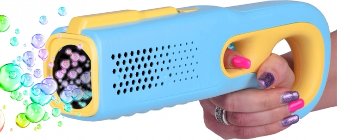 Basta riempire con la soluzione e premere il grilletto. Il meccanismo automatico assicura un flusso continuo di bolle colorate.