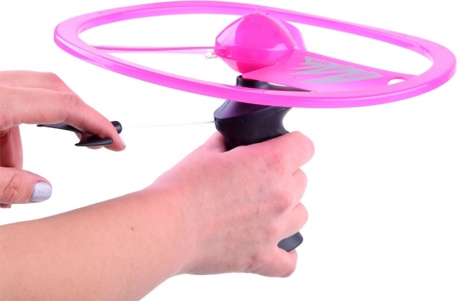 È facile da usare: inserisci il disco sulla maniglia, tira la cordicella e guarda come il “UFO” rosa si solleva. Ottimo per sviluppare le abilità di coordinazione, il movimento e il gioco di gruppo.