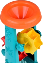 Il set da sabbia per bambini è progettato con cura con motivi di creature marine come pesciolini e polpi. L'attrazione principale è la ruota d'acqua di 37 centimetri in cui i bambini possono versare sabbia o acqua e osservare il movimento delle *doppie ruote*. Questo favorisce lo sviluppo del pensiero logico e della comprensione delle relazioni di causa-effetto.