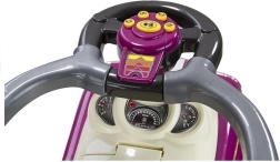 Regala al tuo bambino un divertente giro con l'auto a spinta viola dotata di asta di guida. Questo cavalcabile stabile combina sicurezza, struttura in plastica leggera e facile controllo per genitori e bambini. Grazie alle barriere protettive, ai poggiapiedi e ai pulsanti musicali sul volante, sviluppa la motricità, il pensiero analitico e favorisce il gioco autonomo in casa e all'aperto.