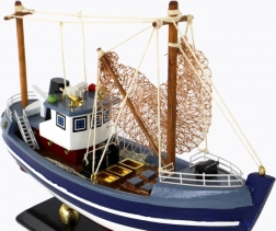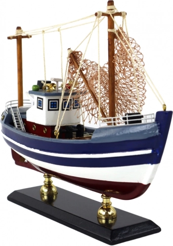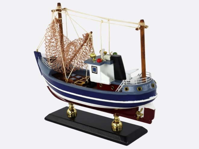 Una delle caratteristiche più distintive di questo modello sono i suoi alti alberi. Sono lavorati e dipinti con cura, aggiungendo autenticità all’insieme. Una rete da pesca è tesa sul ponte della barca, un dettaglio interessante che rimanda alla vita in mare.