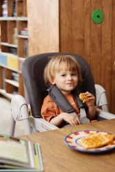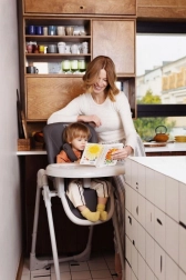 Il seggiolone pappa MoMi GOJO è dotato di cinture di sicurezza a 5 punti, così il tuo bimbo è seduto in modo sicuro mentre tu, con calma, lo aiuti ad ampliare il suo menù.