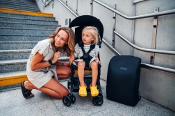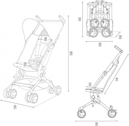 Il passeggino si chiude facilmente in dimensioni minime e si ripone nello zaino in dotazione: ideale per auto, mezzi pubblici e aereo.