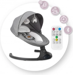 I comandi sono semplici e intuitivi: scegli una delle 5 velocità di dondolio, imposta il timer (8/15/30 min) e seleziona 10 melodie rilassanti oppure riproduci musica tramite Bluetooth. Il motore silenzioso non disturba il sonno e il telecomando permette di modificare le impostazioni comodamente dal divano.