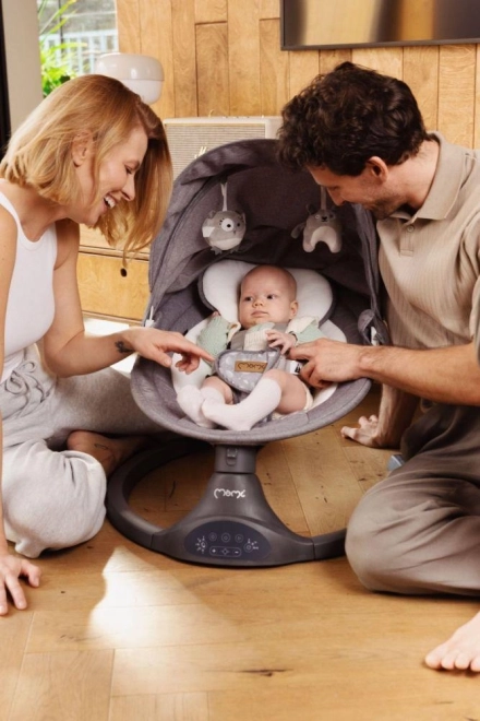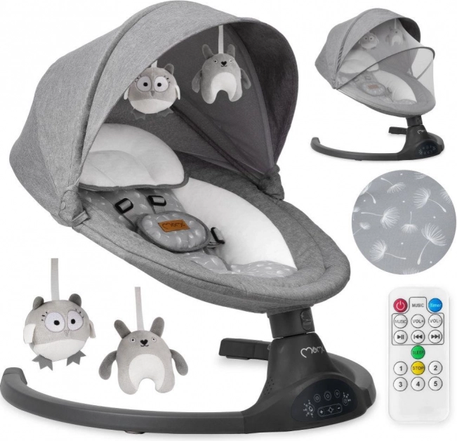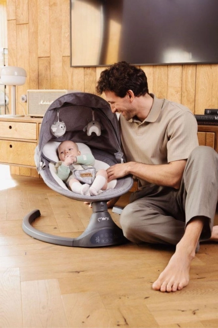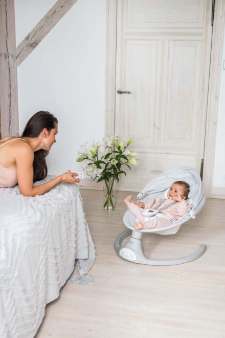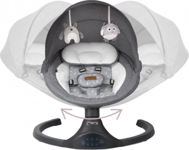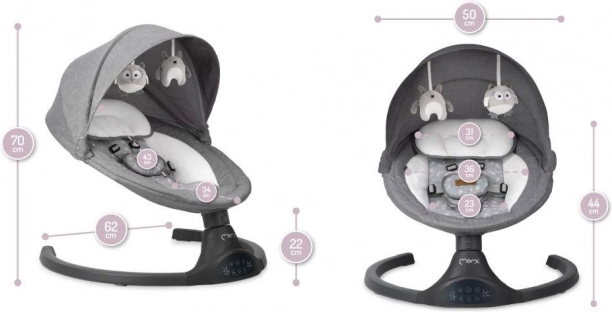 L’altalena elettrica MoMi KENANI offre un dondolio sicuro e rilassante che imita i movimenti naturali nel grembo materno. Grazie alla struttura leggera ma stabile, si sposta facilmente in casa o in terrazza. Il rivestimento morbido e vellutato, la seduta sagomata e il cuscino poggiatesta assicurano comfort anche ai più piccoli.
