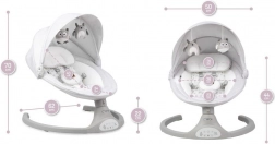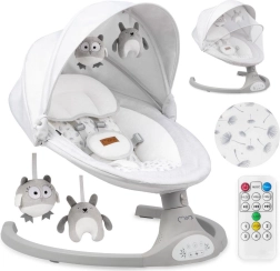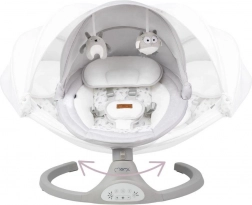 MoMi Kenani è una moderna altalena elettrica progettata per la calma, il comfort e la sicurezza del bebè. Il delicato dondolio laterale imita i movimenti naturali nel grembo, il motore silenzioso non disturba il sonno e le 10 melodie o la musica propria via Bluetooth calmano e intrattengono il bambino. Grazie al telecomando imposti facilmente velocità di dondolio, volume e timer senza alzarti.