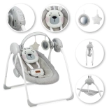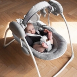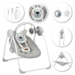 La portata del sedile è adatta dalla nascita fino a 9 kg. Il sedile può essere regolato in 3 posizioni di inclinazione, mentre il dondolio offre 5 diverse velocità. La sdraietta è alimentata a batterie, che durano fino a 180 ore. La struttura è molto stabile, ha piedini antiscivolo e il sedile è dotato di cinture di sicurezza a 5 punti con fibbia coperta.
