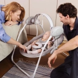 La sdraietta LISS sa dondolare con velocità preimpostata e spegnersi quando lo desideri. Riproduce melodie piacevoli e rilassanti e offre bellissimi e allegri giochini. Inoltre è comoda, sicura e portatile. È multifunzionale, quasi come la mamma!